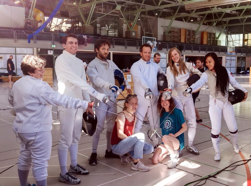 Die traditionsreichen Hochschulturniere stellen bekanntlich stets ein besonderes Highlight im Turnierkalender dar, so auch das in nah und fern bekannte und beliebte Fechten am See der Uni Konstanz. Dementsprechend machten sich gleich acht fleißige Mitglieder der USC/ZHS-Trainingsgruppe auf die Reise an den Bodensee, um bei strahlendem Sonnenschein zu campieren, zu feiern und vor allem viel zu fechten! Und auch wenn es gerade bei diesen Turnieren vor allem um’s Dabeisein geht, konnten sich – ganz nebenei – die Ergebnisse mehr als sehen lassen: DDe: 2. Platz Marion, 3. Platz Kerstin HDe: 4. Platz Jan DFl: 4. Platz Kerstin, 7. Platz Fei sowie in gemischten Mannschaften nochmal ein 2. Platz für Kerstin und ein 3. Platz für Fei, herzlichen Glückwunsch, toll gemacht!
