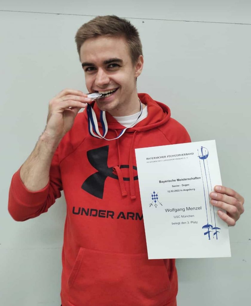 Im Herrendegen waren gleich fünf Fechter für den USC am Start, die von Marion als Kampfrichterin – vielen Dank für dein Engagement – unterstützt wurden: Malte, Gerd und Levi kamen indes trotz teils besserer Setzung nicht über das 32er hinaus und belegten im Gesamtklassement die Plätze 19, 20 und 25 bei 34 Startern. Michael konnte sich in dieser Runde noch durchsetzen, blieb in den Top 16 dann aber am Ettaler Johannes Von Jonquieres mit 10:15 hängen. Besser machte es Wolfgang, der nach Siegen gegen John Henningsen und Tamino Peters erst im Viertelfinale gegen Routinier Frank Baedeker (TV Ingolstadt) mit 10:15 unterlag. Mit Platz 7 konnte Wolfgang damit auch den ersten Platz auf der Bayerischen Rangliste verteidigen, gut gemacht!